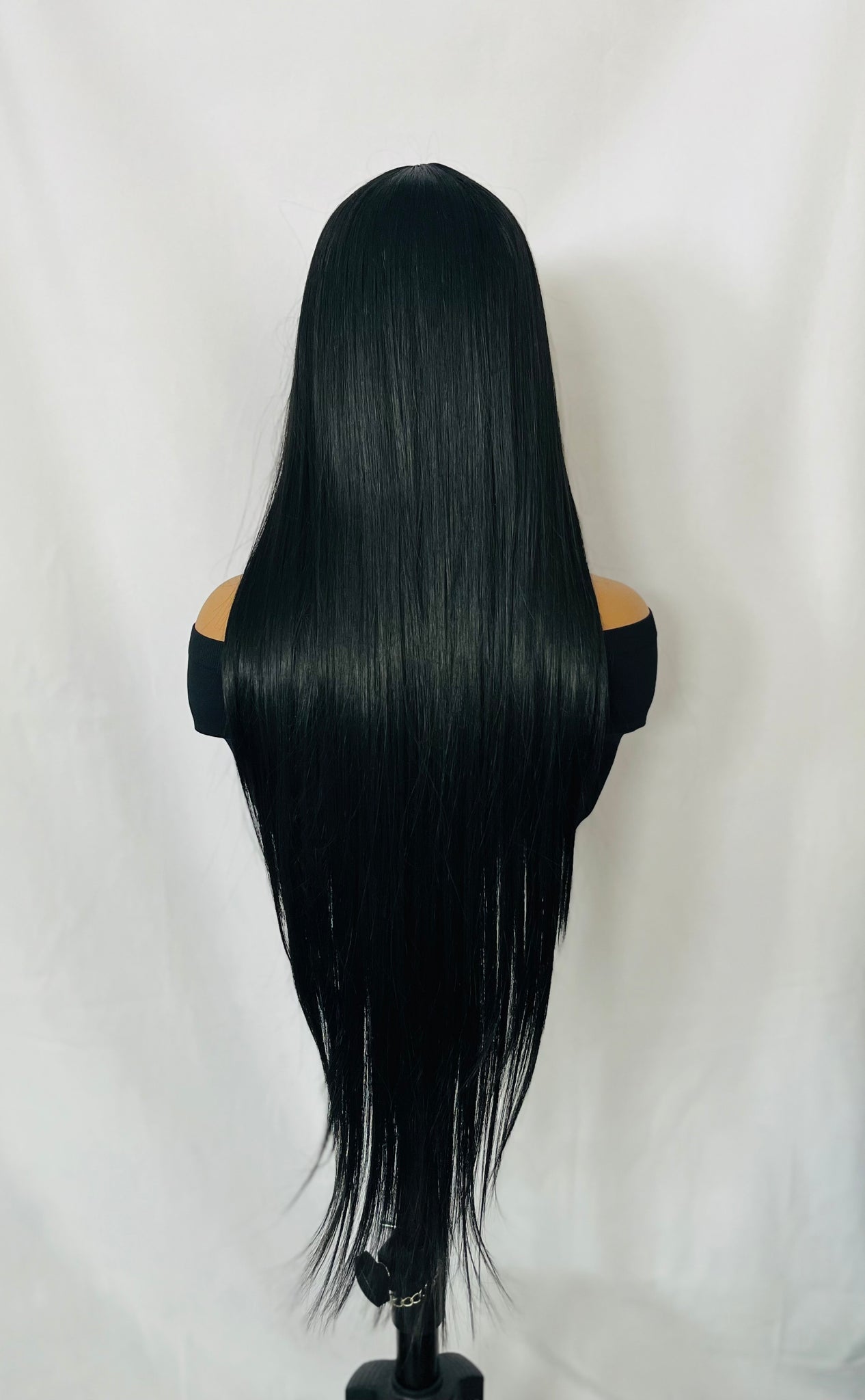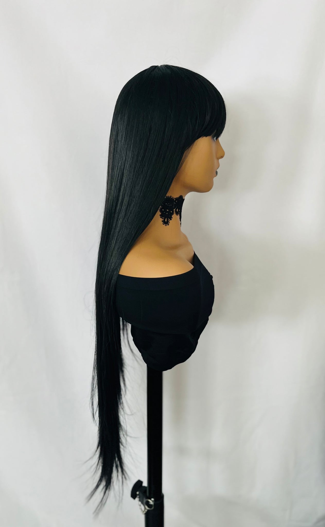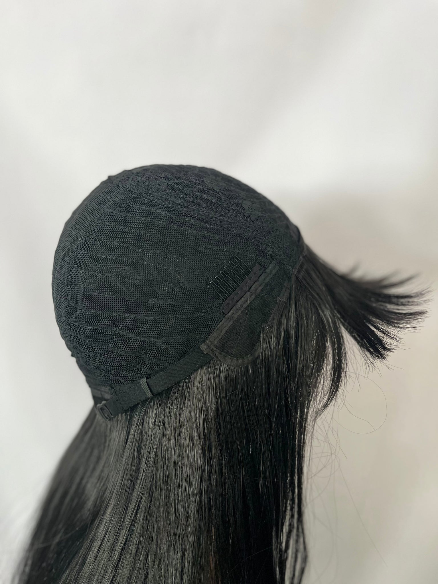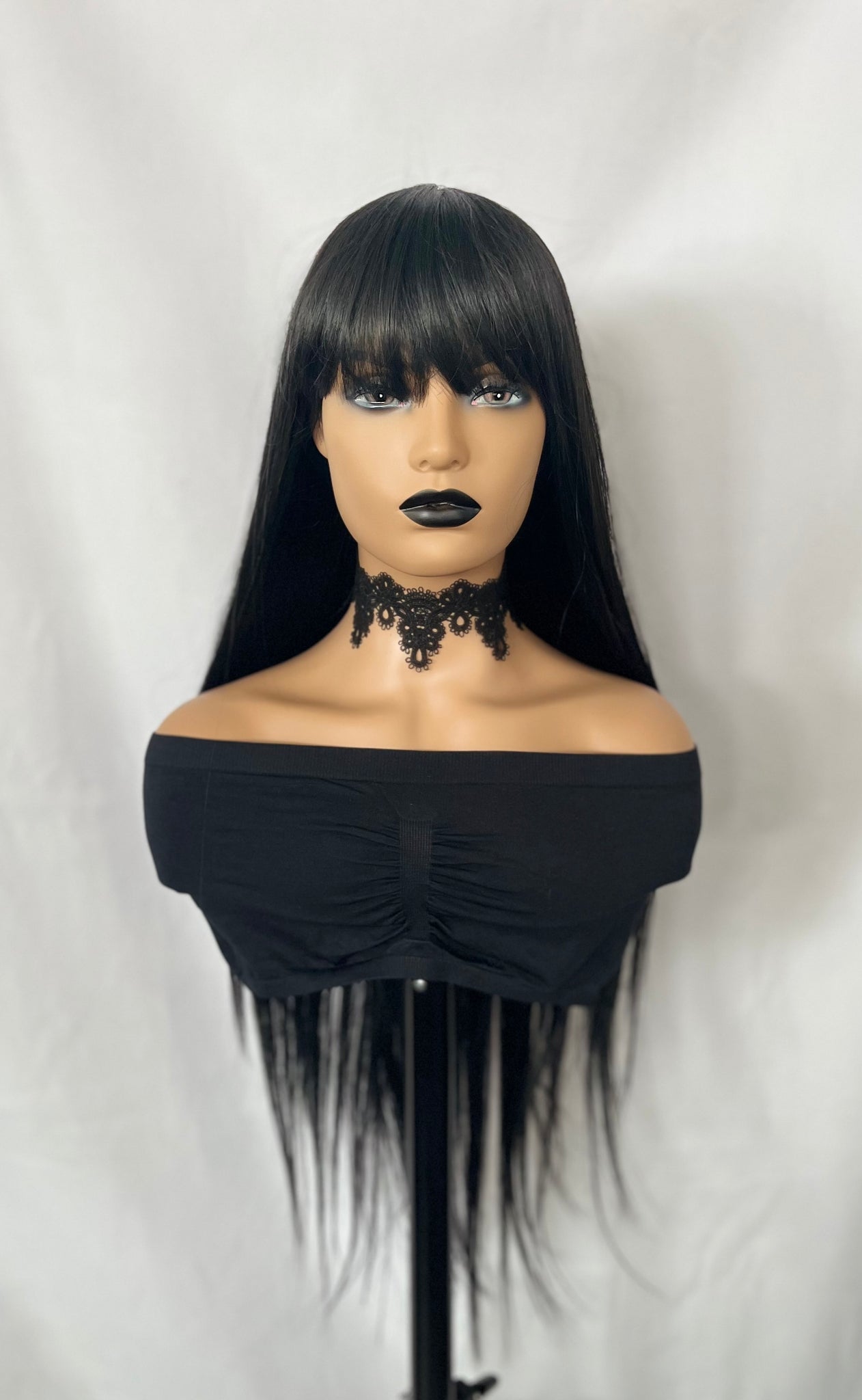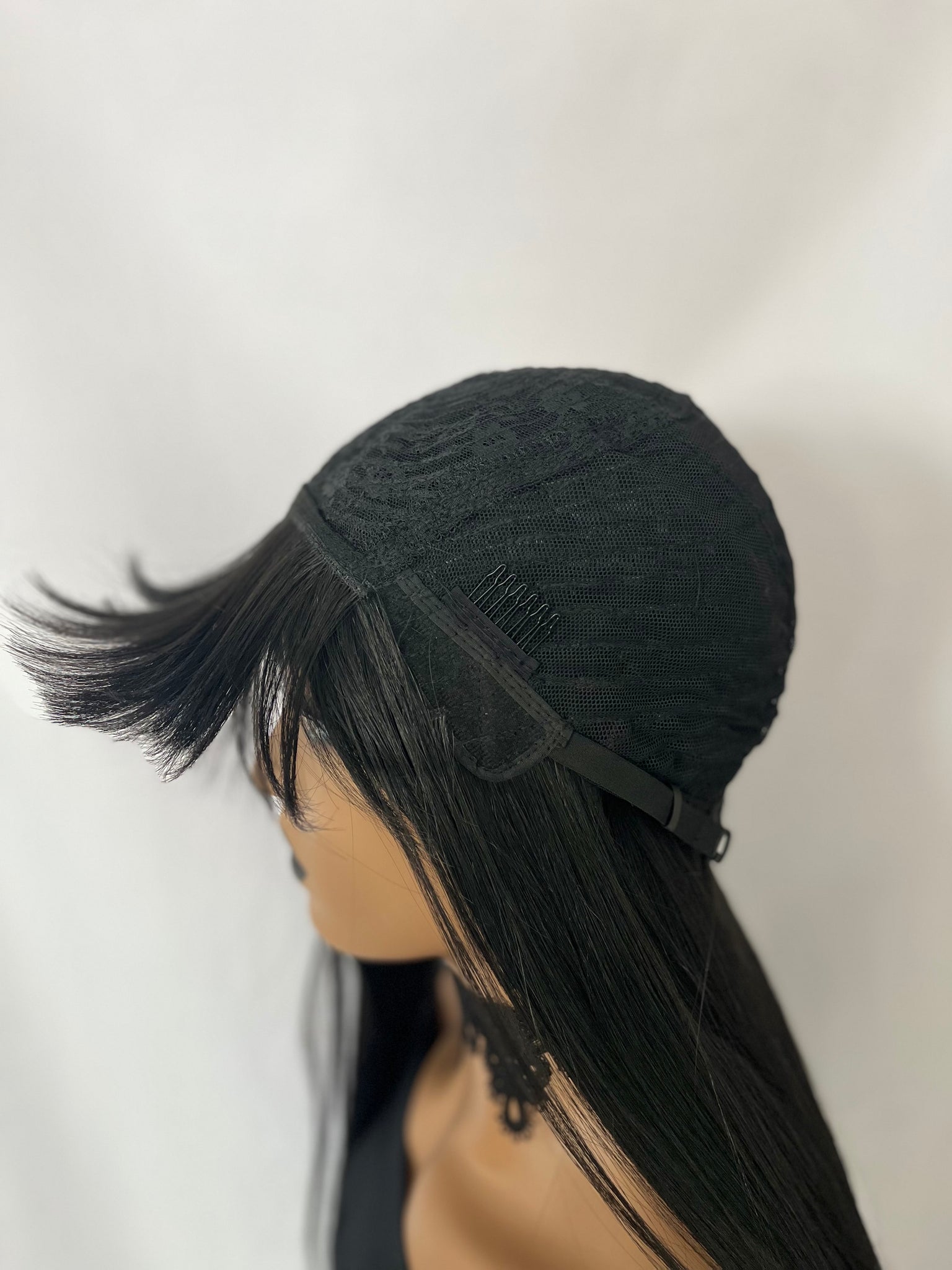 “Meggan” - Long Brown or Blonde Mix Premium Fiber Straight Wig with Bangs